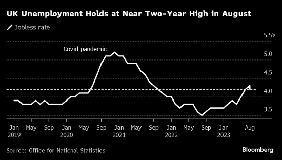 更广泛的情况显示劳动力市场正在放松,这降低了英国央行担心的工资上行压力。央行在9月停止了一系列激进加息行动,并预计失业率将因加息而上升。