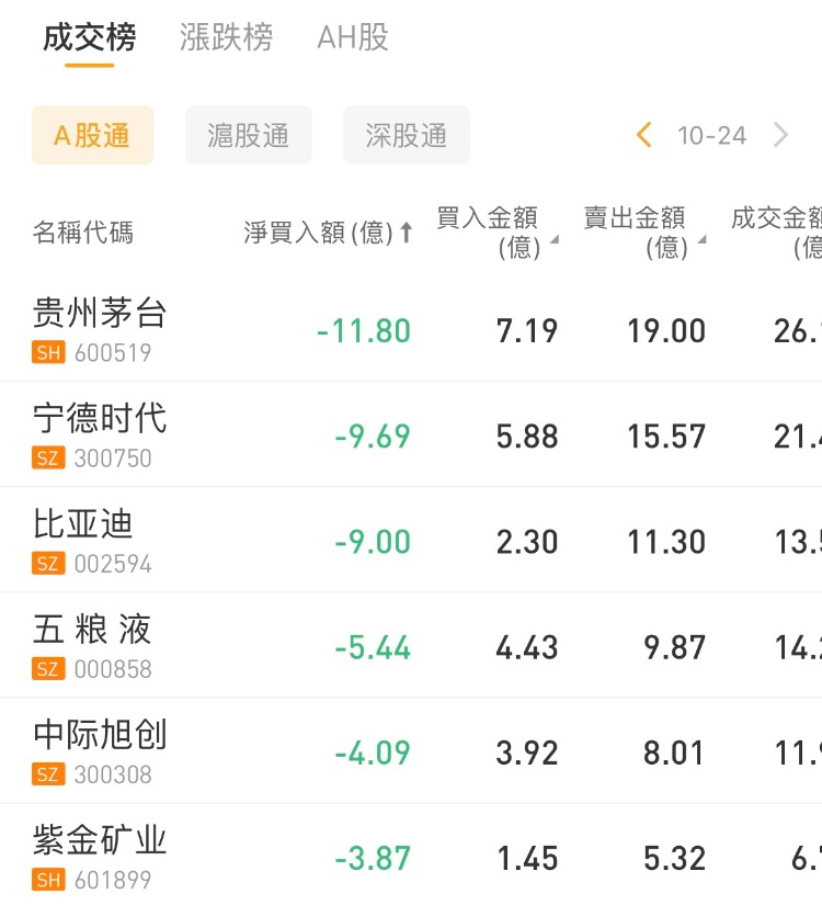 北向资金今日大幅净卖出50.46亿元。贵州茅台、宁德时代、比亚迪分别获净卖出11.8亿元、9.69亿元、9.0亿元。北方华创净买入额居首,金额为2.71亿元。