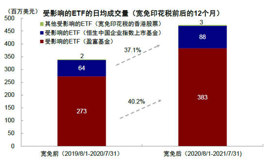 图表5:受影响的ETF日均成交量宽免后提升近40%