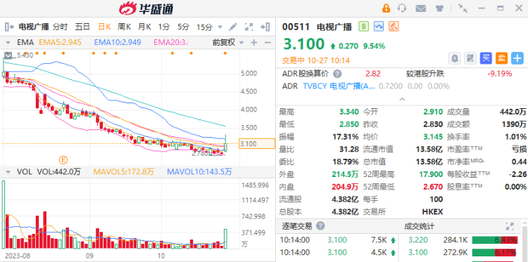10月27日讯,电视广播早盘一度涨超14%,截至发稿,涨9.54%,当前成交额1390万港元。根据公告,该公司预期截至2023年12月31日止六个月期间将实现正数EBITDA,而相比截至2023年6月30日止六个月期间则产生EBITDA亏损港币1.86亿元。