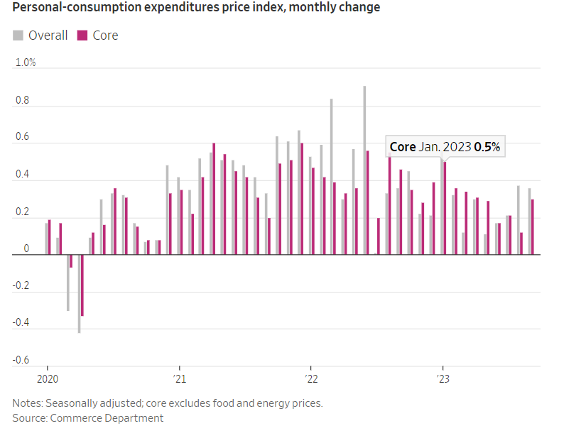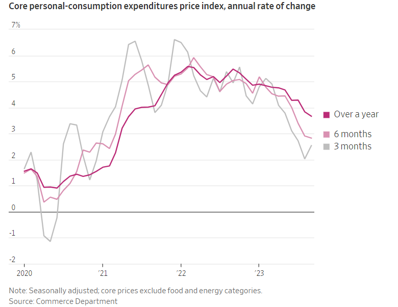 与去年同期相比,上月总体PCE上涨3.4%,涨幅与8月份持平;核心PCE上涨3.7%,而8月份则上涨3.8%。