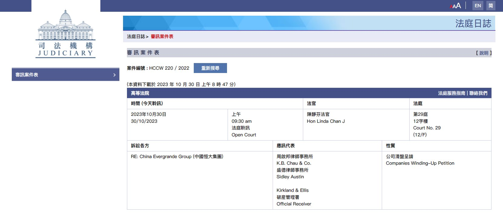 香港高等法院今天将审理由离岸投资者佳盛环球(Top Shine Global)提交的恒大清盘呈请。一旦颁令清盘,恒大将成香港法律史上遭遇清盘的最大型地产开发商。此前有媒体称,因恒大在9月最后一刻取消债权人会议,一批早前支持其重组,反对清盘的债权人开始动摇。