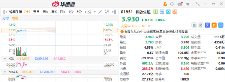 锦欣生殖 $01951.HK 早盘上涨5.08%,现报3.93港元,成交额4359万港元。