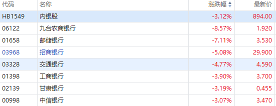 银行股全线下挫,邮储银行跌近7%。消息面上,近日,多家大行公布三季报,招商银行前三季度归母净利为1138.9亿元 同比增长6.52%;邮储银行前三季度净利润757.66亿元 同比增长2.48%;交通银行前三季度归母净利润691.66亿元 同比增加1.88%;农业银行前三季度归母净利润2073.56亿元 同比增加4.97%。东莞证券指出,今年前三季度,共有24家银行归母净利润同比正增长,与第二季度相比,由于净息差进一步收缩,20家银行的归母净利润同比增速均有不同程度的下滑。