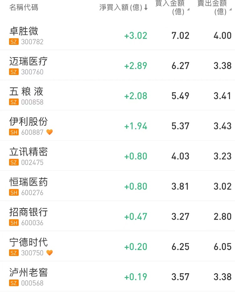 北向资金买入卓胜微,沽出比亚迪