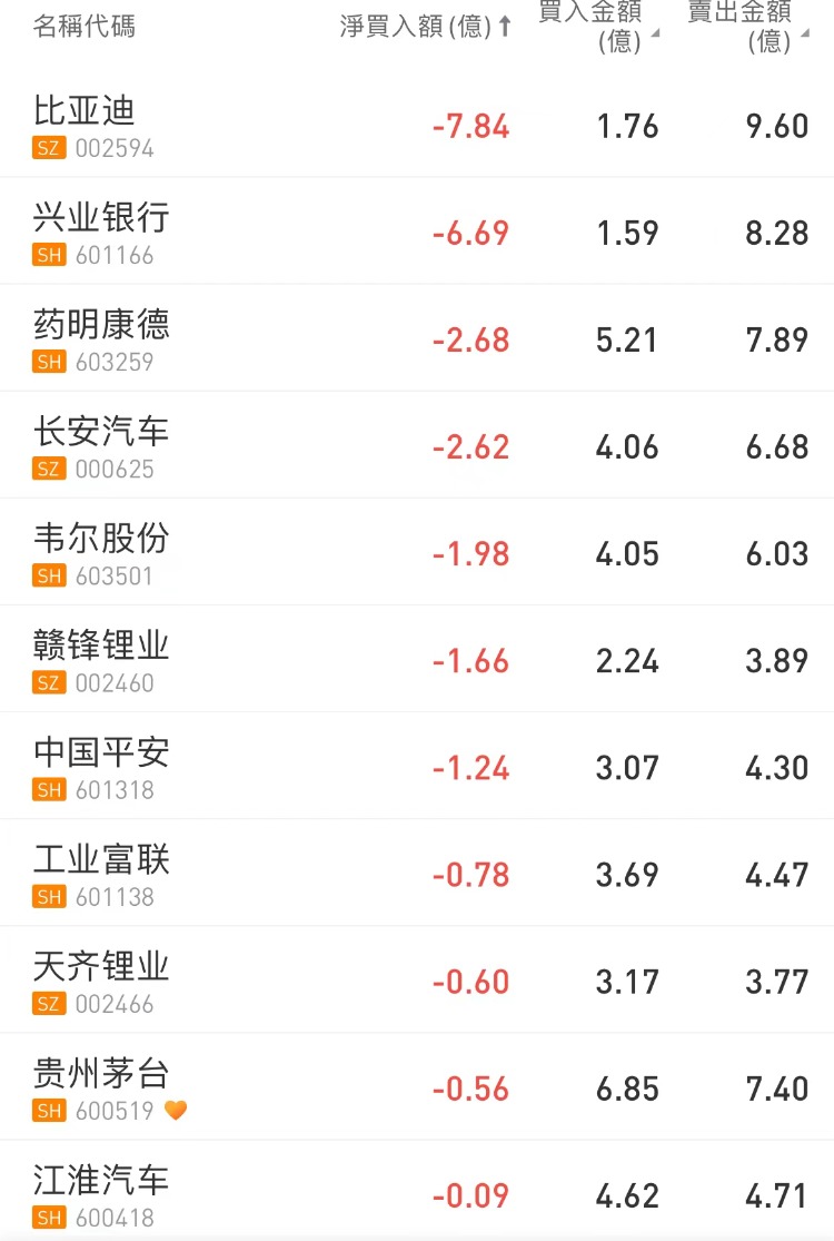 北向资金净卖出47.53亿元,比亚迪、兴业银行、药明康德分别遭净卖出7.84亿元、6.69亿元、2.68亿元;卓胜微逆势获净买入3.02亿元。