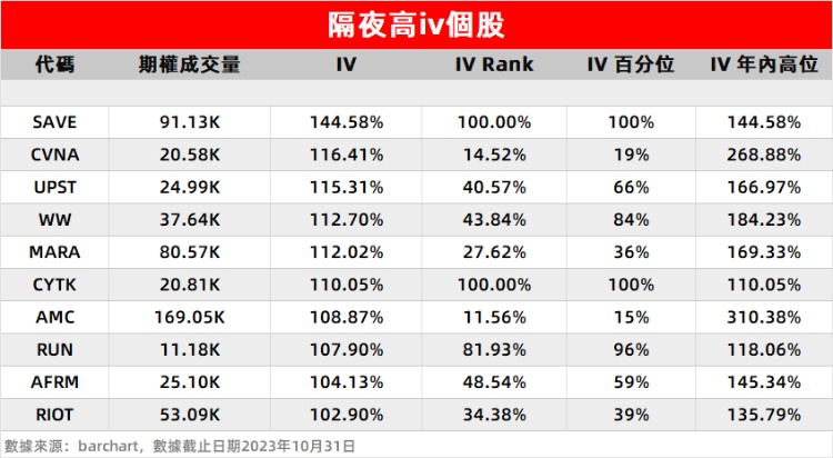 1、航空公司精神航空(Spirit Airlines) $SAVE 隔夜大跌12%,该股在当日成交9万张期权合约,隐含波动率达144.58%,刷新年内高位。