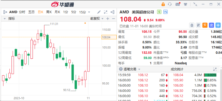 - AMD在周二盘后举行的业绩电话会议上表示,MI300芯片将在未来几周开始出货。该芯片与英伟达的产品在人工智能领域展开竞争。AMD看好AI芯片前景,明年有望带来超20亿美元销售收入。
