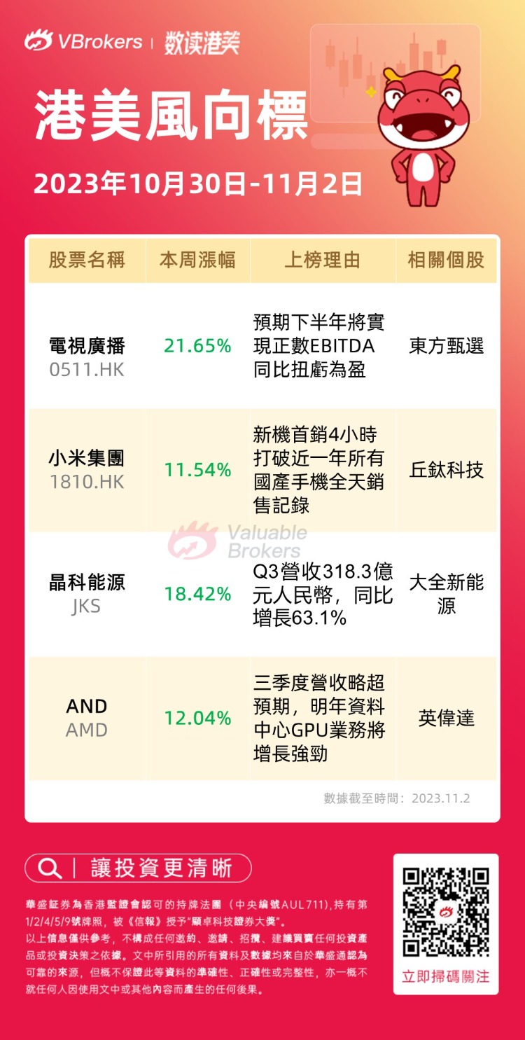 港美风向标 | 小米成“大米”,年内累升近40%!AMD芯片有望带来20亿美元销售收入