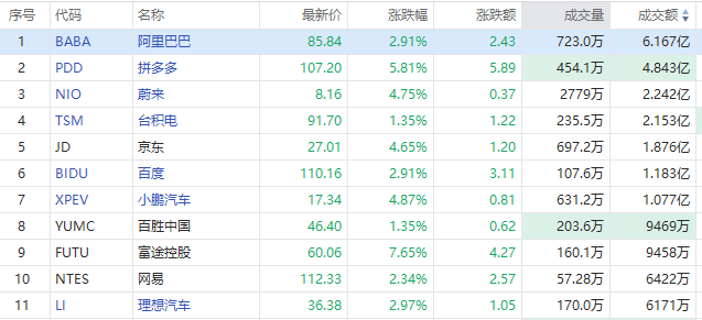 截至发稿,拼多多涨近6%,京东涨超4%,百度涨3%。造车新势力集体走高,蔚来、小鹏汽车涨超4%,理想汽车涨3%。