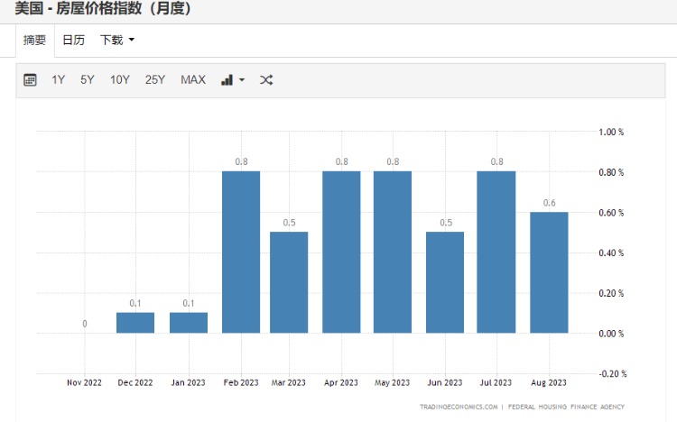 美国公布8月份FHFA房价指数按月升0.6%,轻微高过预期0.5%,唯比上月0.8%略见下调。按年升5.6%,好过上月4.6%。同月份标普/Case-Shiller 二十城市楼价指数按年升2.2%,远胜前值向上修订后的0.2%。