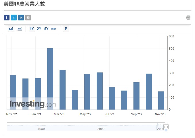美国公布9月份JOLTs 职位空缺955.3万个,多过预期940万个及上月经修订后的949.7万个。10月份ADP私人职位新增11.3万个,略少过预期15万个,唯多过上月8.9万个。同月份非农就业新增职位回落至15万个,远少过预期18万个,及上月经修订后的29.7万个。期内失业率升至3.9%,略高预期及9月份的3.8%。月内平均时薪按年升4.1%,略高过预期4%。按月同升0.2%,唯低过预期0.3%。