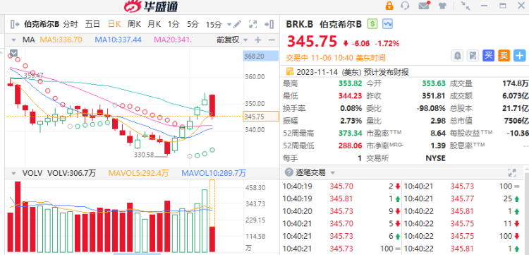 伯克希尔B $BRK.B / $BRK.A 均跌约1.7%,Q3净亏损127.7亿美元,现金总额达到1572.4亿美元创历史新高,过去一年抛售近400亿美元股票。