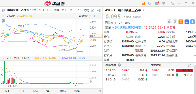 纳指连升7日,昨日靠5大重磅股支撑,101只成分股之中有61只下跌。纳指再升至7月至今的下降轨,认为能突破可参考牛 $49801.HK ,收回价13,600点,实际杠杆8.1倍,2023年12月15日到期。产品特点: 活跃条款、远牛。如认为指数或会进一步下跌可留意熊 $49869.HK ,收回价15,750点,实际杠杆15.4倍,2024年12月20日到期。