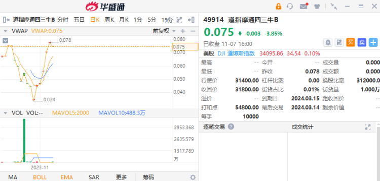 美国10年期债息回升至4.6厘,但无阻美股隔晚再升,道指及标指连升6日,纳指更录7连升。走势上,道指表现较佳,昨日高位创个半月新高。日线图上,道指9月至今形成的双底格局,现已突破颈线,继续看好可参考道指牛 $49914.HK ,收回价31,800点,实际杠杆12.2倍,2024年03月15日到期。产品特点: 中距离、低街货。如认为后市仍有下跌空间可注意道指熊 $49670.HK ,收回价35,900点,实际杠杆14倍,2024年12月20日到期。产品特点: 中距离、低街货。