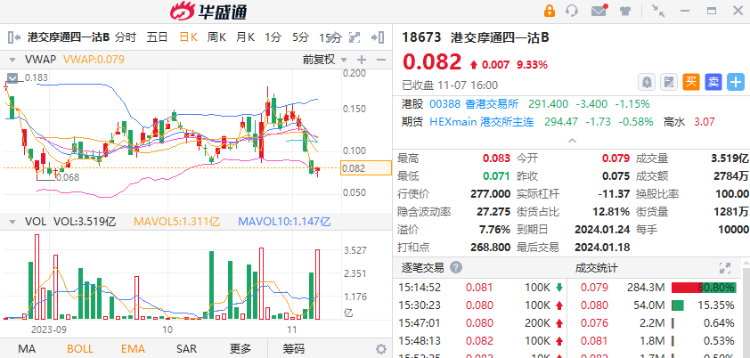 港股方面,大市成交稍增,值得留意的是近日升市交投增加及成交较跌市多,或反映投资气氛改善。就下调股票印花税,立法会将于11月15日进行二读辩论,若能通过有关条例草案,市场预料政府将颁布最早于11月17日正式实施。港交所股价重返280港元至300港元区间,轮证资金流显示港交好仓上日录得约95.6万港元净流出,至于淡仓上日录1.5百万港元净流入。观察北水资金流向,港交上日录得约3.1亿港元净买入,为港股通十大活跃个股中,资金净流入第三位。如投资者欲趁低吸纳好仓可留意港交购 $19516.HK ,行使价330.2港元,实际杠杆9.7倍,2024年03月25日到期。如认为正股或会进一步下跌可参考港交沽 $18673.HK ,行使价277港元,实际杠杆10.8倍,2024年01月24日到期。