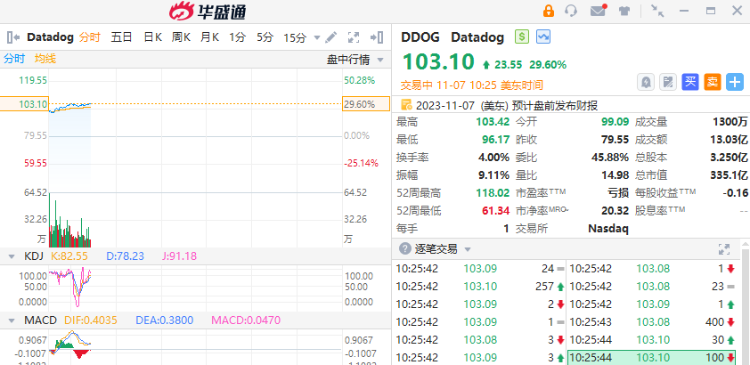 云端程序监控工具开发商Datadog $DDOG 涨近30%,报103美元。该股Q3营收为5.475亿美元,同比增长25%