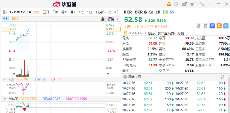 KKR $KKR 涨超5%, Q3营收同比增长78.5%,资产管理收入超预期。
