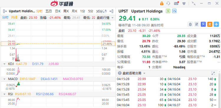 UpStart $UPST 盘前暴跌21%,第三季度总收入为1.35亿美元,较2022年第三季度下降14%,低于分析师普遍预期的1.4026亿美元。
