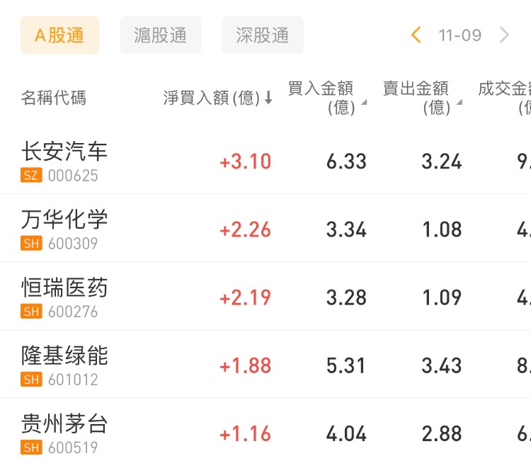 华盛资讯11月9日讯,南下资金今日净买入50.41亿港元。其中港股通(沪)净买入27.26亿港元,港股通(深)净买入23.15亿港元。