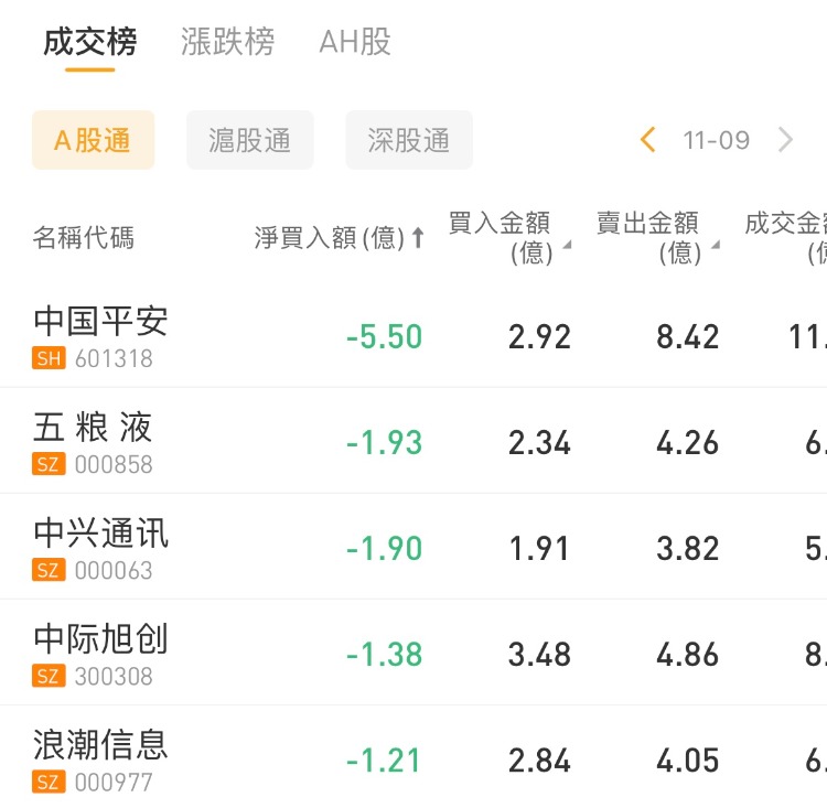 北向资金今日净卖出0.63亿元。中国平安、五粮液、中兴通讯分别获净卖出5.5亿元、1.93亿元、1.9亿元。长安汽车净买入额居首,金额为3.1亿元。