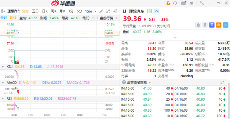 理想汽车 $LI 盘前一度涨超7%,现涨3.46%,报40.72美元。理想汽车Q3营收同比增长271%,环比增长21%至346.8亿元,净利润28.1亿元,同比扭亏为盈;公司预计第四季度车辆交付量为12.5万辆至12.8万辆,同比增长169.9%至176.3%。