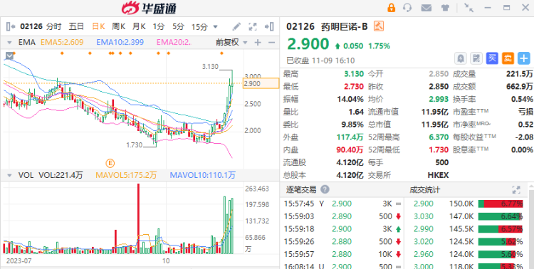 | 再鼎医药 | 15.20% | 公司第三季度亏损净额同比收窄至6920万美元 |