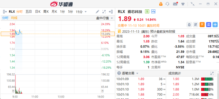 雾芯科技 $RLX 盘初一度涨约22%,最高触及2美元。雾芯科技第三季度净营收为4.3亿元,环比增长13.2%;非美国通用会计准则下经调整净利润为2亿元,环比增加129%。公司经营性现金流已连续两个季度为正。