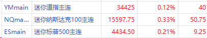 华盛资讯11月14日消息,三大期指盘前齐涨,截至发稿,纳指期货 $NQmain 涨0.33%,标普500指数期货 $ESmain 涨0.21%,道指期货 $YMmain 涨0.12%。