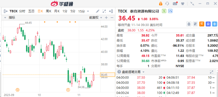 泰克资源 $TECK 盘前涨超4%。消息面上,嘉能可将以69.3亿美元现金收购泰克资源旗下冶金煤业务77%的股权,而亚洲钢铁制造商新日铁住金株式会社和浦项制铁将收购剩余股权。