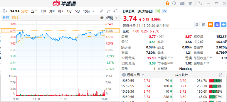 达达集团 $DADA 盘前涨6.95%,报4美元。消息上,公司第三季度总营收达人民币29亿元,同比增长20%;非美国通用会计准则下(Non-GAAP)归属于达达集团普通股股东的净亏损为人民币920万元,上年同期为亏损2.7亿元。该公司预计,2023年第四季度总收入将介于人民币30亿元至人民币33亿元之间,同比增长12%至23%。