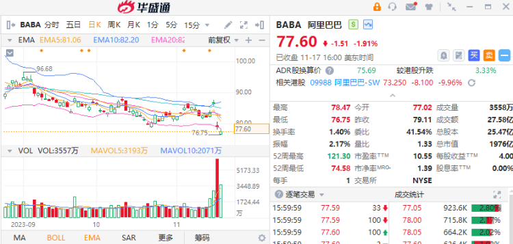 无论如何,阿里大跌的情绪崩溃,也影响了百度、腾讯、京东等科网股的表现,马云8亿美金卖出了80亿美金的效果,人人陪着阿里跌。