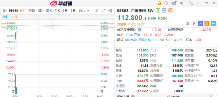 华盛资讯11月22日讯,两大科技巨头快手-W、百度集团-SW昨日披露亮眼的季报,今日港股早盘股价集体高开高走,涨幅一度均扩大至5%。
