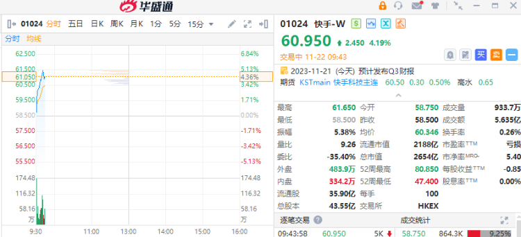 华泰证券:3Q外循环广告加速 降本增效持续,上调快手-W目标价
