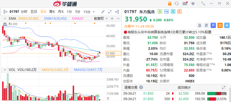 东方甄选(01797)发布公告,公司于2023年11月24日开市前与认购人订立认购协议,据此,该公司有条件同意向认购人配发及发行5135.23万股认购股份,认购价为每股股份31.75港元(相当于每股股份约4.08美元),认购总额为人民币15亿元。每股股份认购价31.75港元代表股份于最后交易日在联交所所报每股股份收市价。