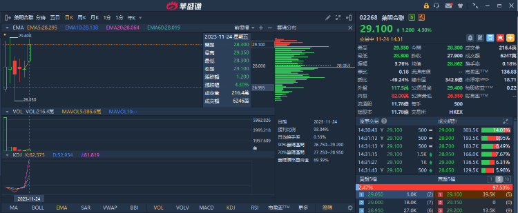 药明合联(02268)午后涨超4%,盘中逼近前高29.4港元,较招股价已涨超40%。截至发稿,涨4.30%,报29.10港元,成交额6247万港元。消息面上,根据香港联交所11月23日披露的文件,董事长陈智胜陈智胜于11月17日以每股均价27.8814港元增持药明合联34万股普通股股份,价值约947.97万港元。增持后,陈智胜最新持股数目为41.89万股股份,好仓比例由0.01%升至0.04%。