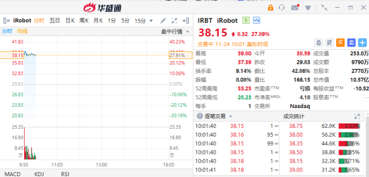 机器人制造商iRobot大涨超27%。消息上,三名知情人士透露,亚马逊以14亿美元收购扫地机器人制造商iRobot的交易将获得欧盟反垄断部门的无条件批准。