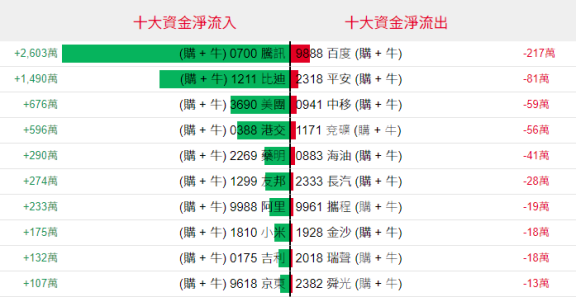淡仓(认沽证及熊证)方面,上周五腾讯淡仓单日获1189万港元资金净流出为最大。