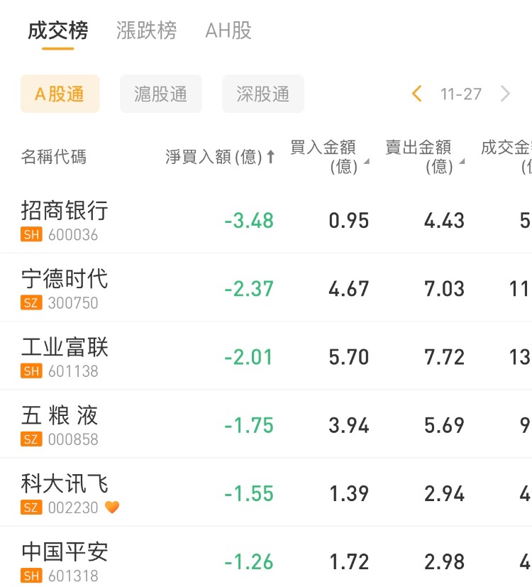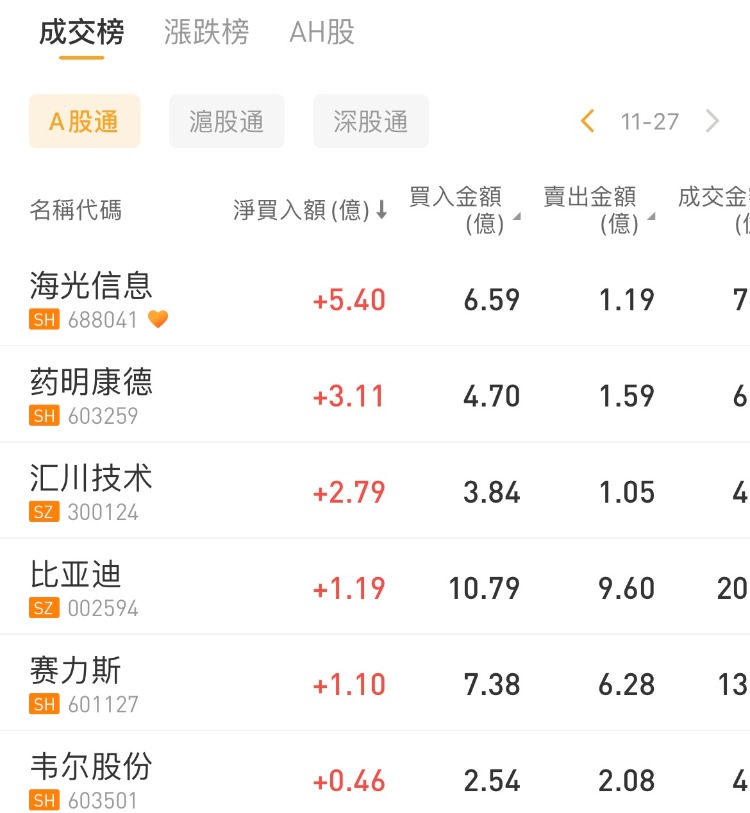 华盛资讯11月27日讯,南下资金今日净买入3.48亿港元。其中港股通(沪)净买入3.50亿港元,港股通(深)净卖出201.67万港元。