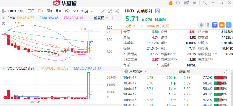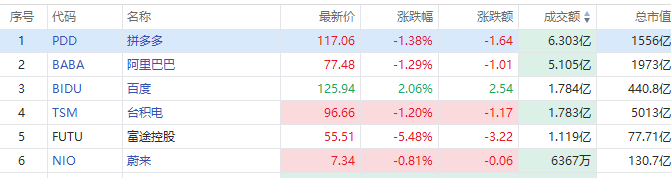 其他中概股方面,尚乘数科涨超16%,前一交易日该股暴涨23%;亿航智能涨超6%,公司三季度总收入为2860万元,同比增长247.9%
