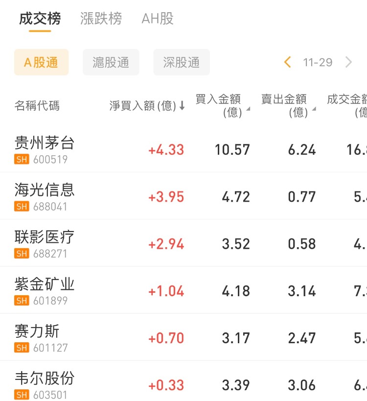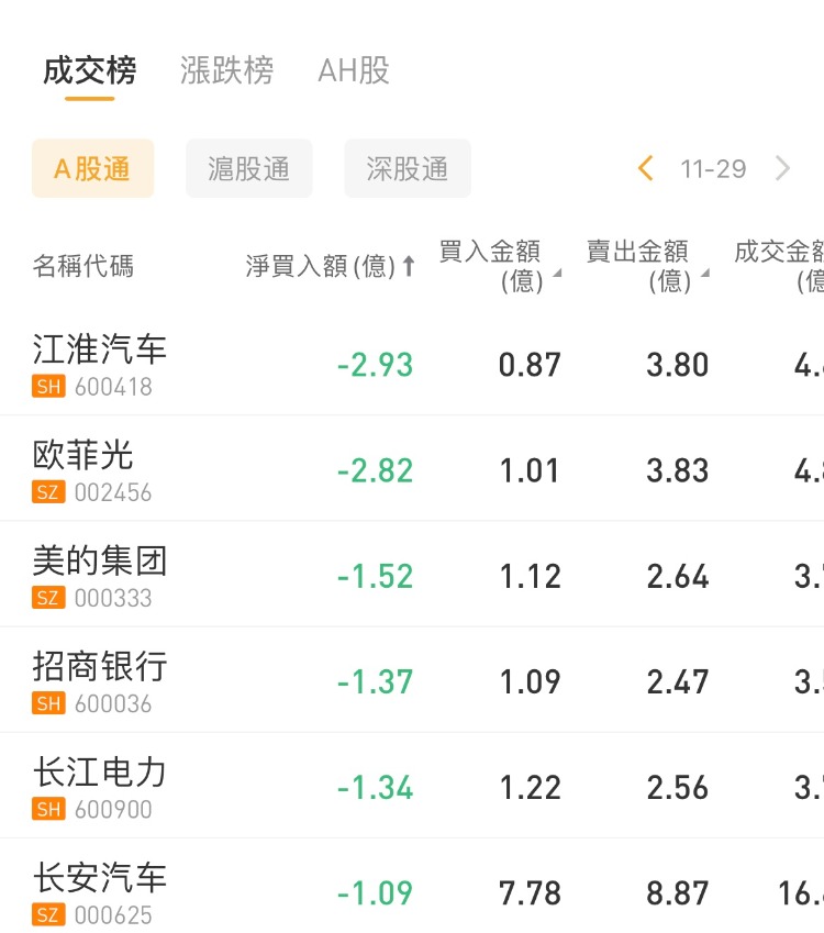北向资金买入贵州茅台,沽出江淮汽车