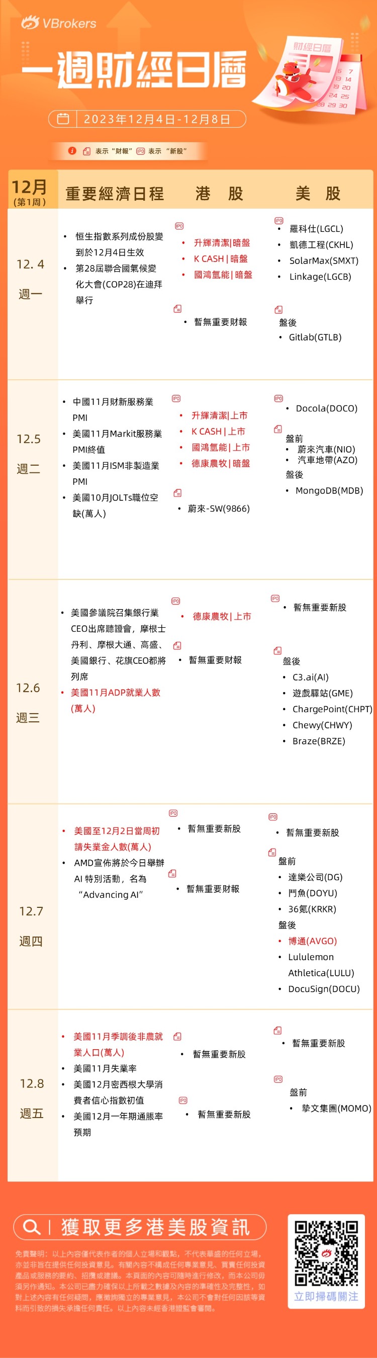 2、美股方面,下周预计即将上市5只新股,重点关注: