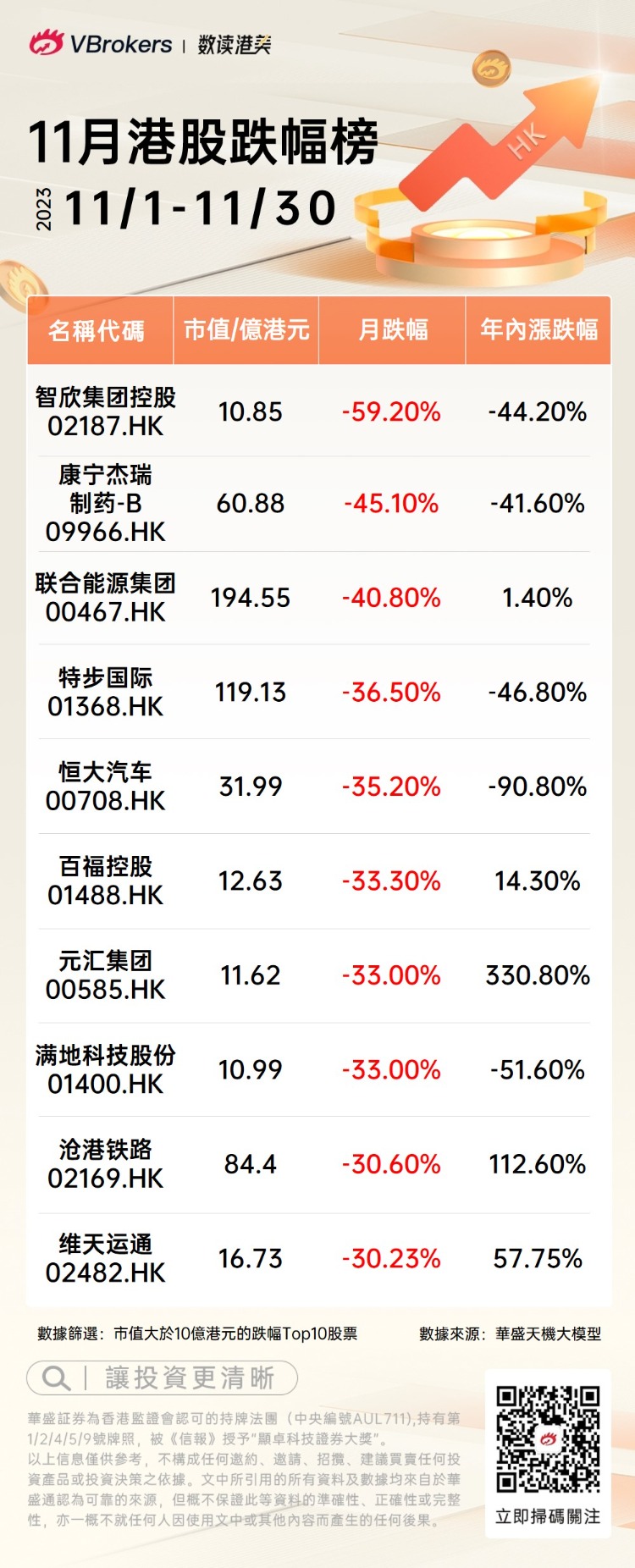 | 名称/代码 | 市值/亿港元 | 月跌幅 | 年内涨跌幅 |