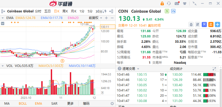 周五,比特币概念股走高,截至发稿,Coinbase(COIN.US)涨近5%,MicroStrategy(MSTR.US)涨超5%,Marathon Digital(MARA.US)涨超10%,Riot Platforms(RIOT.US)、Bit Digital(BTBT.US)涨超8%。