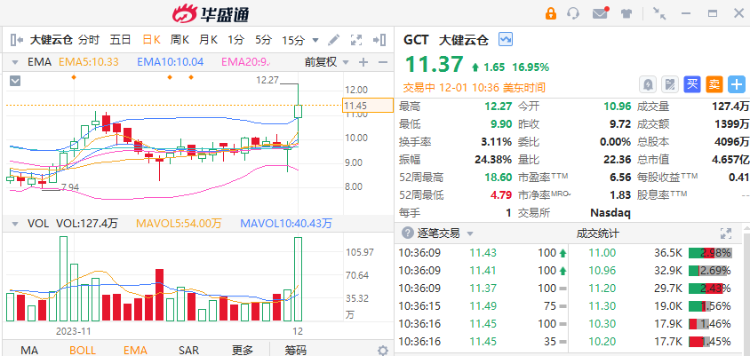 大健云仓(GCT.US)Q3营收同比增长39.2% 净利润大增3357.1%