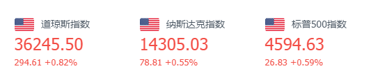 美股上周五集体收涨,道指涨0.82%,全周累计上涨2.42%,纳指涨0.55%,全周累计上涨0.38%,标普500指数涨0.59%,全周累计上涨0.77%,其中道指、标普500指数均创今年以来收盘新高。
