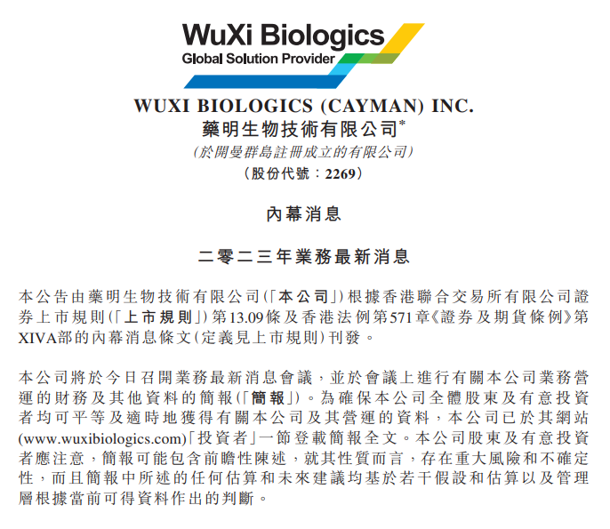 据公告显示,药明生物将于今日(4日)召开业务最新消息会议,并于会议上进行有关公司业务营运的财务及其他资料的简报,简报中所述的任何估算和未来建议均基于若干假设和估算以及管理层根据当前可得资料作出的判断。