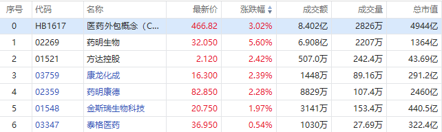 华盛资讯12月6日消息,港股医药外包概念股早盘集体回暖,截至发稿,药明生物涨近6%,方达控股、康龙化成、药明康德涨超2%,金斯瑞生物科技涨近2%,泰格医药跟涨。