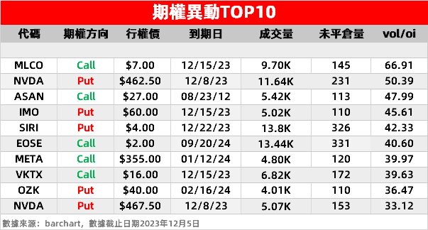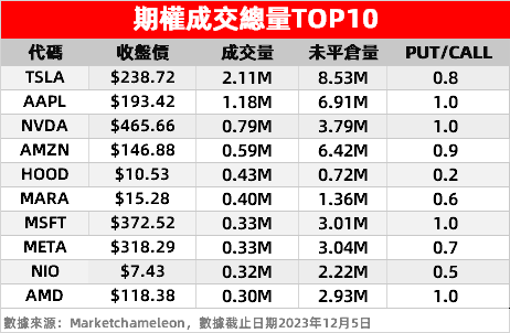 3、蔚来:周二公布财报后涨1.50%,期权成交总量32万张,罕见跃升至成交量榜单前10位,其中CALL单占比74%,多头势力高涨,押注该股走出底部区间。
