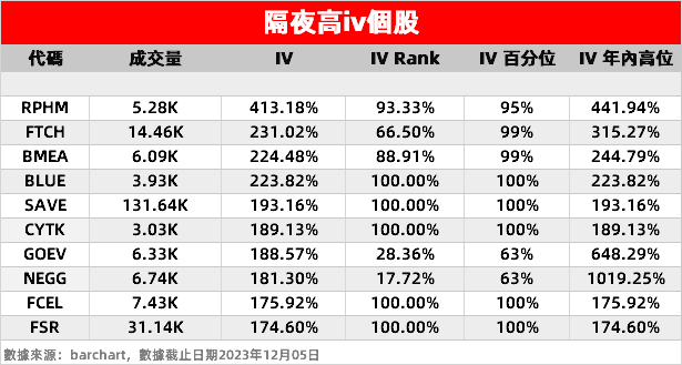 1、Reneo治疗 $RPHM :为美国一家创新药研发公司,周二创近一个月来新高后回落跌4.55%。当日其期权成交量5280张,隐含波动率413.18%接近年内最高值。
